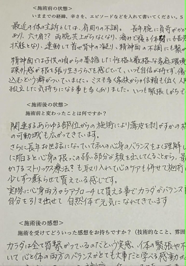 当初の施術に信頼をおいてくださり本当にありがとうございます。私自身としては、ゴッドハンドと言っていただくには全くもって未熟だと思っておりますが。